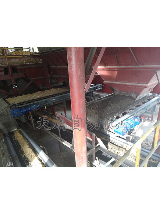 皮帶秤稱(chēng)重橋架安裝于輸送機(jī)架上,當(dāng)物料經(jīng)過(guò)時(shí),計(jì)量托輥檢測(cè)到皮帶機(jī)上的物料重量通過(guò)杠桿作用于稱(chēng)重傳感器,產(chǎn)生一個(gè)正比于皮帶載荷的電壓信號(hào)。在皮帶秤上有一個(gè)稱(chēng)重傳感器裝在稱(chēng)重橋架上,工作時(shí),將檢測(cè)到皮帶上的物料重量送入稱(chēng)重儀表,同時(shí)由測(cè)速傳感器皮帶輸送機(jī)的速度信號(hào)也送入稱(chēng)重儀表,儀表將速度信號(hào)與稱(chēng)重信號(hào)進(jìn)行積分處理,得到瞬時(shí)流量及累計(jì)量。速度傳感器直接連在大直徑測(cè)速滾筒上,提供一系列脈沖,每個(gè)脈沖表示一個(gè)皮帶運(yùn)動(dòng)單元,脈沖的頻率正比于帶速度。稱(chēng)重儀表從稱(chēng)重傳感器和速度傳感器接收信號(hào),通過(guò)積分運(yùn)算得出一個(gè)瞬時(shí)流量值和累積重量值,并分別顯示出來(lái)。